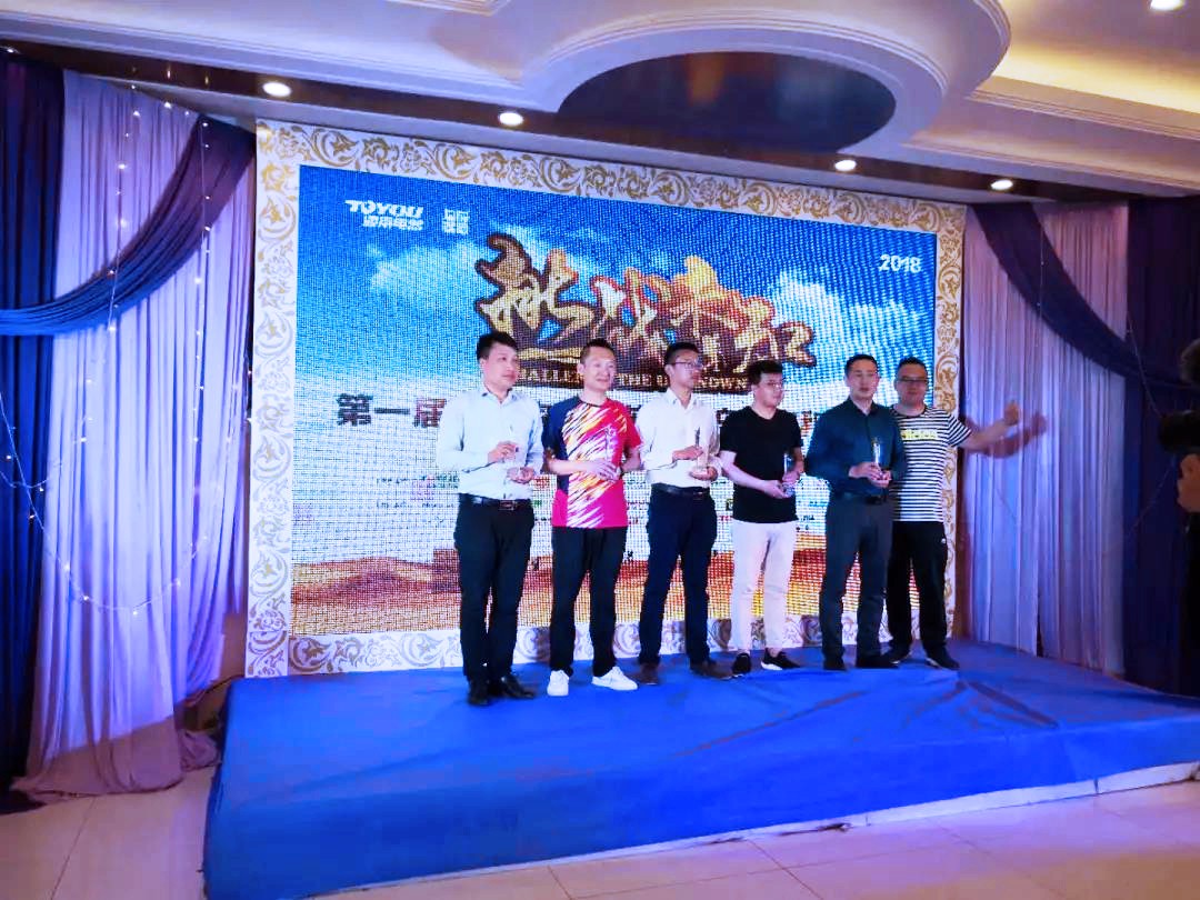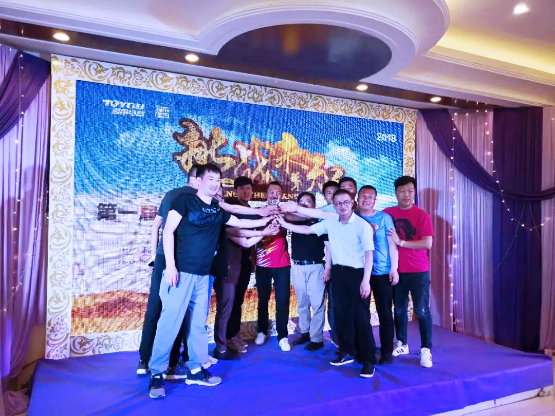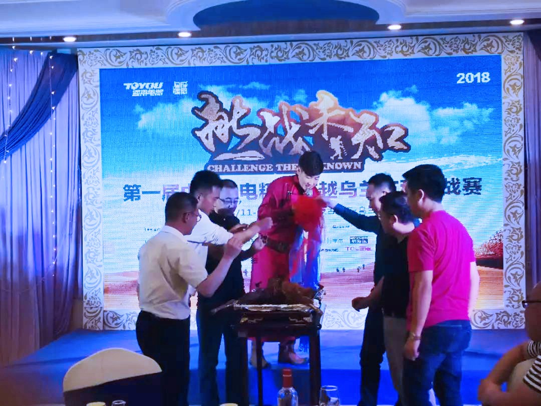 此次2018第一届中国家电精英穿越乌兰布和挑战赛欢迎晚宴,于5月11日晚在内蒙古乌海宾馆宴会城隆重举行。活动主办方乌海市通用电器有限责任公司总经理黄定坚致欢迎词,为即将启程的三支队伍壮行;欢迎晚宴现场,由来自全国近50位家电精英组成的三支队伍依次亮相,展示他们的豪情壮志,5.12,誓破黄沙。
