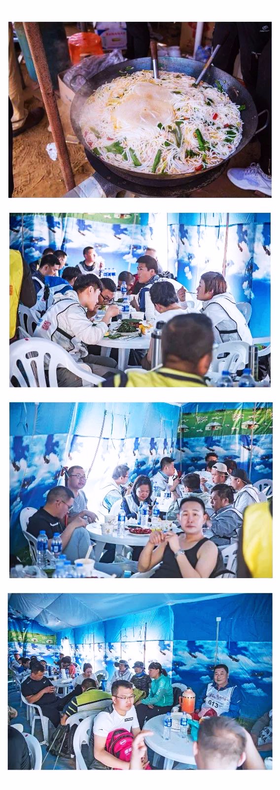 比赛当天,乌兰布和好似以它最热情的一面在迎接着家电精英们的到来,忽大忽小的春风一直刮着,却没有让家电精英们退缩,他们依旧迎风而来,挺进了乌兰布和腹地中的那一抹绿色—内蒙古精英户外运动有限公司的专属营地。当天最早抵达的参赛嘉宾仅在上午10:40就成功抵达终点营地,而最后抵达的队员也在12:00成功完成上半段赛场的挑战。搭建好的大帐静静在大漠腹地迎接着各位勇者。餐饮团队已经准备好了午餐,热气腾腾的羊肉粉汤、各类水果以及正宗的凉拌苦菜,家电精英们大快朵颐,吃的好不畅快。