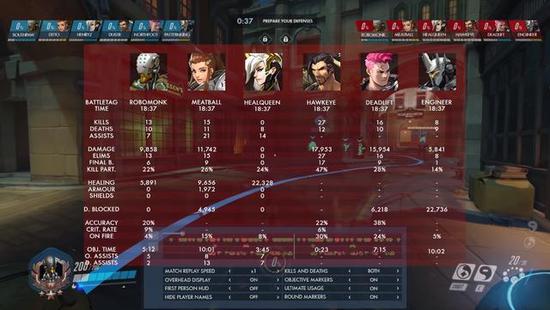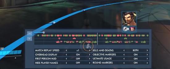 再来,当玩家进入重播游戏时,下方的面板设计可让玩家自由控制显示击杀追踪、大招使用、占领与击杀复活等图表。